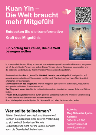 Ich, Natascha, habe eine tiefe Verbindung mit Kuan Yin und es ist mir eine besondere Ehre Botschaften von Kuan Yin, dem Bodhisattva des größten Mitgefühls für deinen Lebensweg zu geben. Kuan Yin wird dich mit ihrer Botschaft für deine Gesundheit und Wohlbefinden inspirieren.